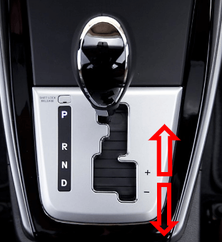 차량 운전을 할 때 기어 조작을 'D'에서 '+' , '-' 있는 쪽으로 이동시켜 줍니다. 그리고 속도를 내리면서 멈추고자 할 때는 '-' 쪽으로 기어봉을 내려주고 속도가 많이 줄었다고 판단이 들 때 천천히 브레이크를 밟아줍니다. 반대로 속도를 높이고자 할 때는 '+' 방향으로 기어봉을 조작해줍니다.